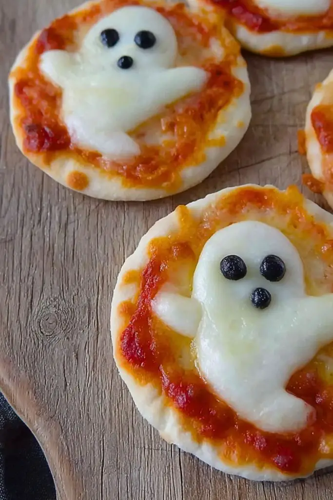 Keywords: Halloween food ideas, mini pizzas, ghost pizzas, spooky snacks, easy dinner, kid-friendly recipe