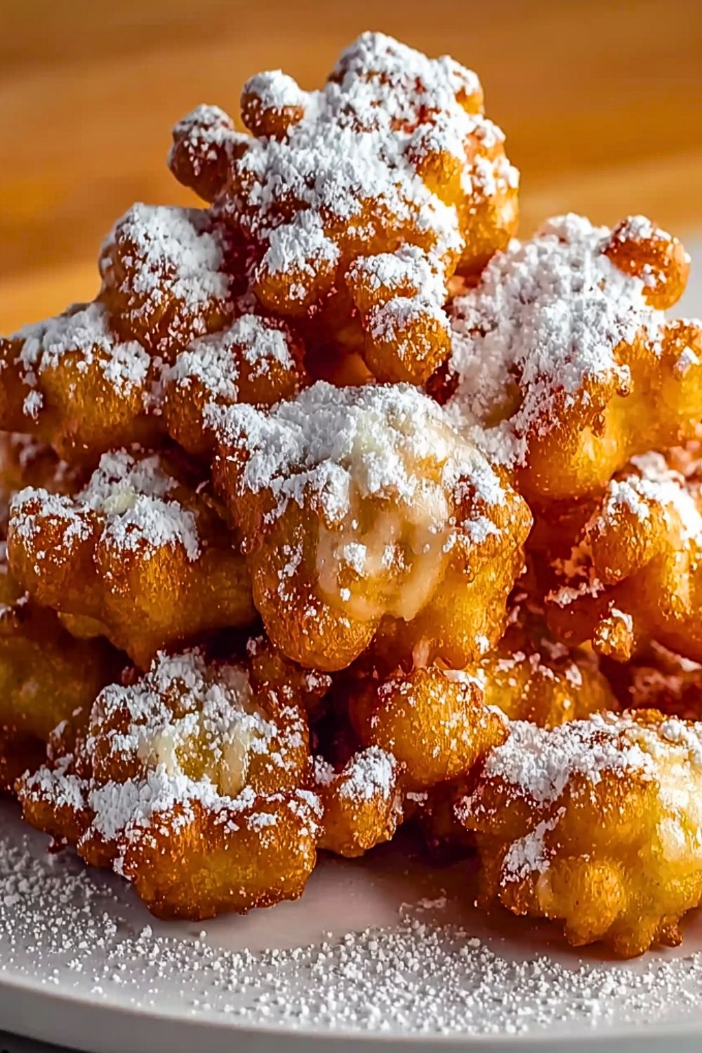 Once the bites are done, transfer them to a plate lined with paper towels. Generously dust with powdered sugar while still warm. Serve immediately for that authentic fairground taste!