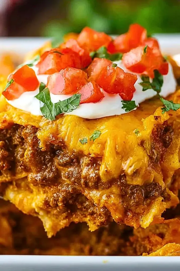 - Layer Wisely: Start with a layer of chips on the bottom, followed by beef, creamy filling, and cheese — then repeat. This ensures flavor in every bite.