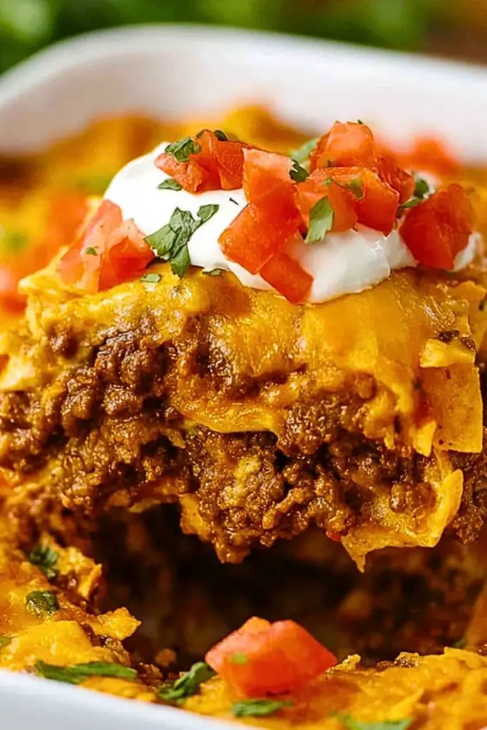 Crispy, cheesy, and full of bold flavor, Beef Dorito Casserole is the ultimate comfort food that combines everything you love about tacos in a warm, bubbly baked dish. Picture layers of seasoned ground beef, melty cheddar cheese, tangy salsa, creamy sour cream, and a crunchy bed of Nacho Cheese Doritos — all baked to perfection in one irresistible casserole. Each bite bursts with Tex-Mex flavor, making it a favorite for weeknight dinners, potlucks, or anytime you’re craving a hearty, cheesy indulgence.
