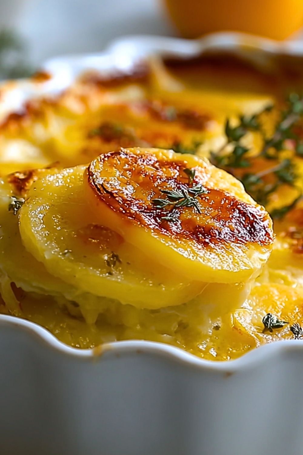 Use starchy potatoes like Russet or Yukon Gold for best results — they break down slightly and create a natural thickness in the creamy sauce. Always slice your potatoes to 1/8-inch thickness; a mandoline ensures consistency and saves time. Let the cream mixture simmer before pouring over the potatoes, as this starts the cooking process and infuses it with flavor. Layer evenly, and make sure each slice gets coated with the sauce. Don’t rush the baking time — it’s what transforms those raw slices into tender, golden perfection. Finally, allow the scalloped potatoes to rest for at least 10–15 minutes after baking. This sets the layers and makes slicing easier.