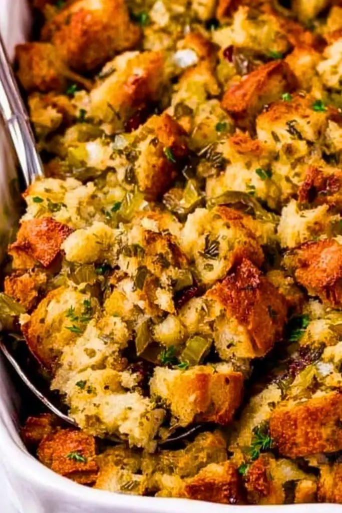 This stuffing is classic, easy to make, and absolutely loaded with flavor. It uses simple ingredients, yet the results are extraordinary. Whether you’re hosting a big family dinner or contributing to a potluck, this recipe is sure to become a staple.