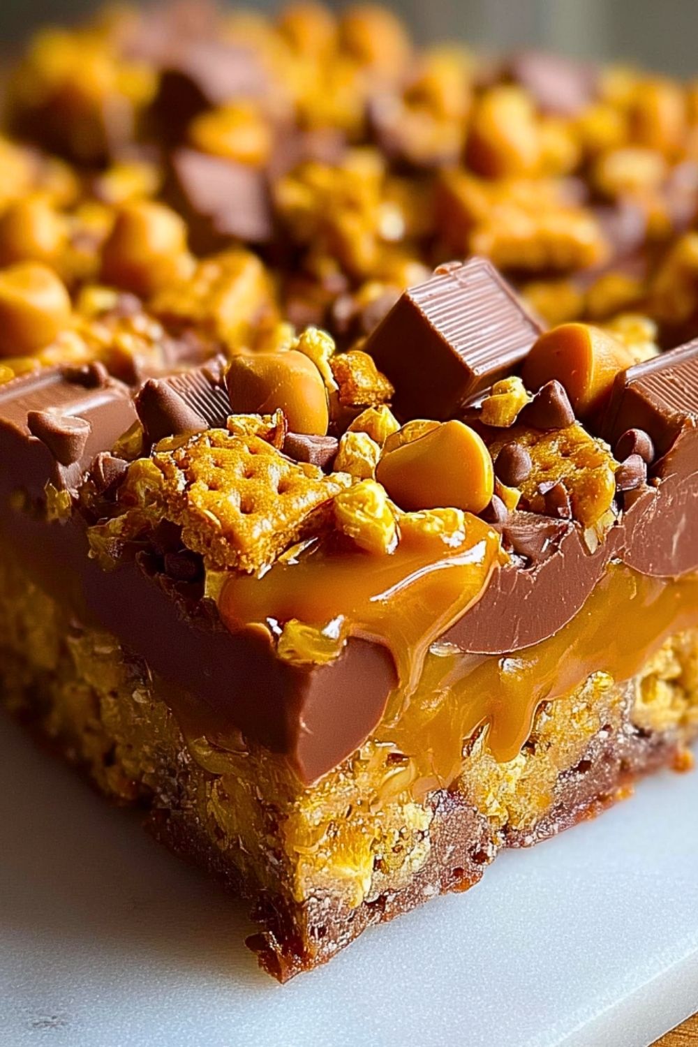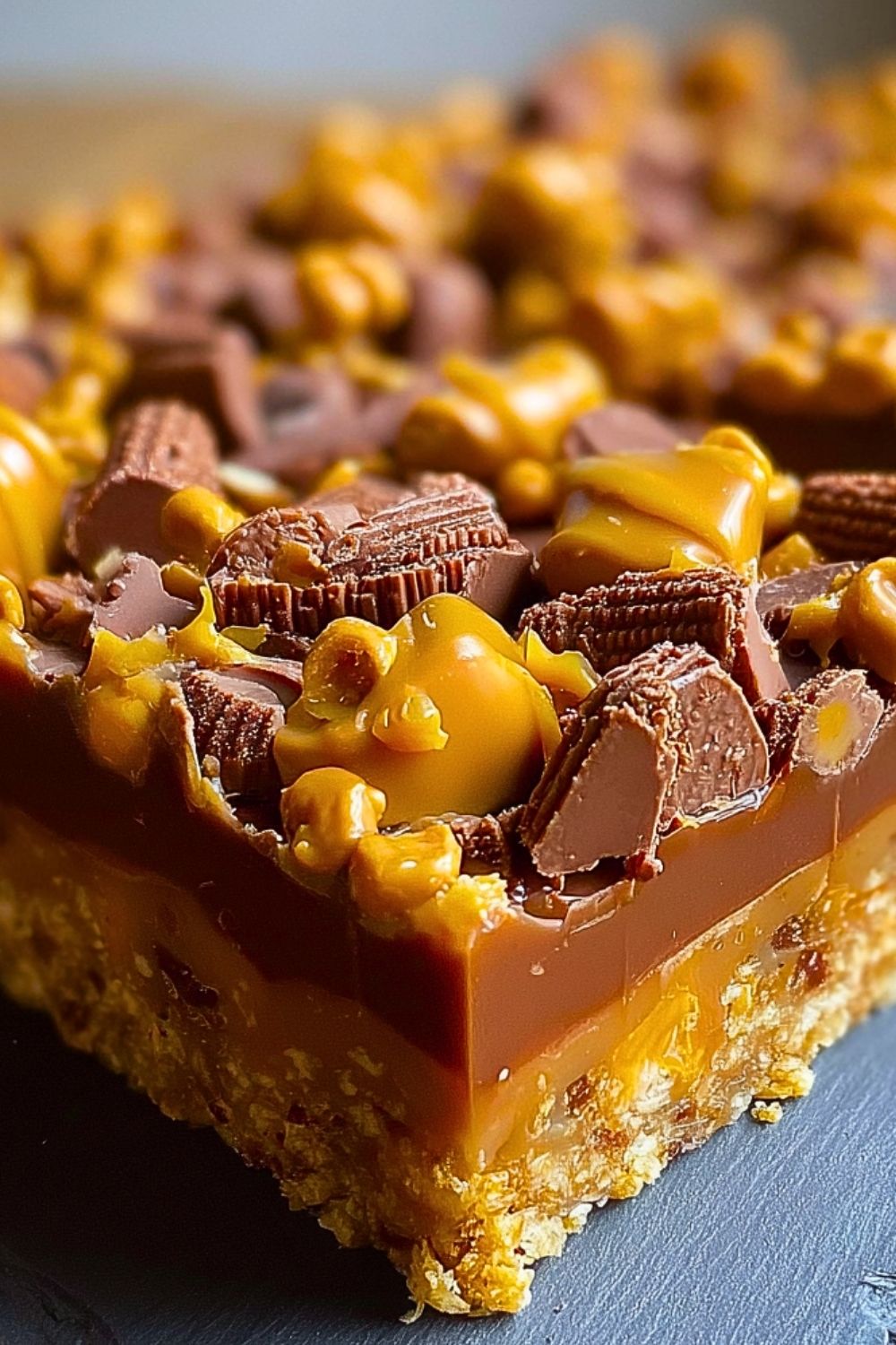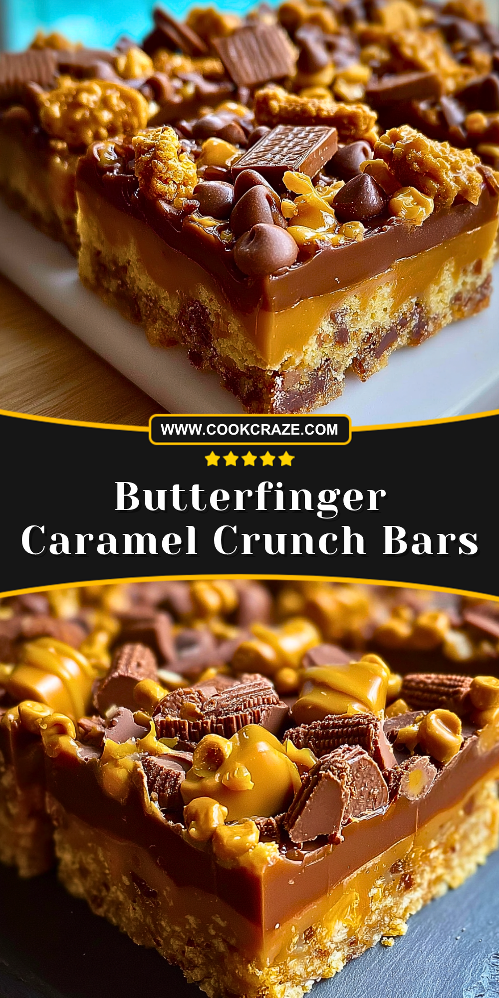 These bars strike the perfect balance between sweet, crunchy, and creamy. The buttery base holds everything together while the caramel layer adds richness, and the Butterfinger pieces bring that signature crisp peanut-buttery crunch.