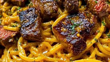 • Creamy Cajun Garlic Butter Spaghetti with Beef Strips