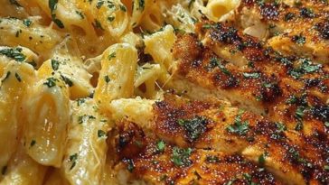 • Creamy Cajun Chicken Pasta with Parmesan, Garlic, and Mozzarella