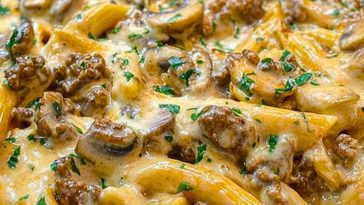 • Creamy Velveeta Beef Stroganoff and Penne Pasta