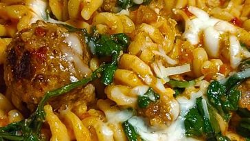• Weeknight Garlic Butter Rotini with Beef, Italian Sausage and Spinach