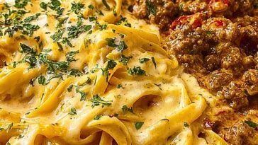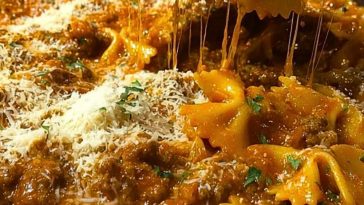 • Creamy Velveeta Bowtie Pasta with Italian Beef Marinara
