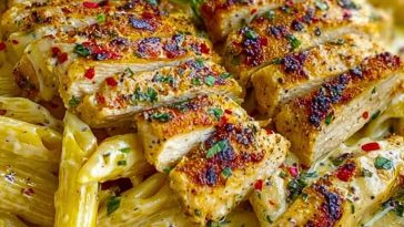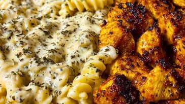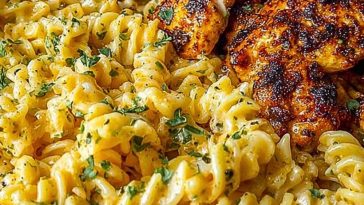 • Creamy Parmesan Rotini with Cajun Garlic Butter Chicken