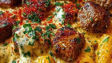 • Cajun Beef Linguine in Creamy Velveeta Parmesan Garlic Sauce