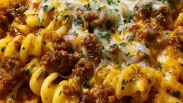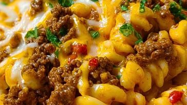 • Creamy Mozzarella Rotini with Spicy Cajun Beef and Velveeta Sauce