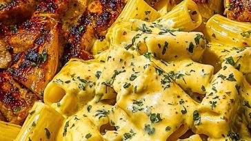 • Creamy Velveeta Chicken Rigatoni with Mozzarella Garlic Sauce