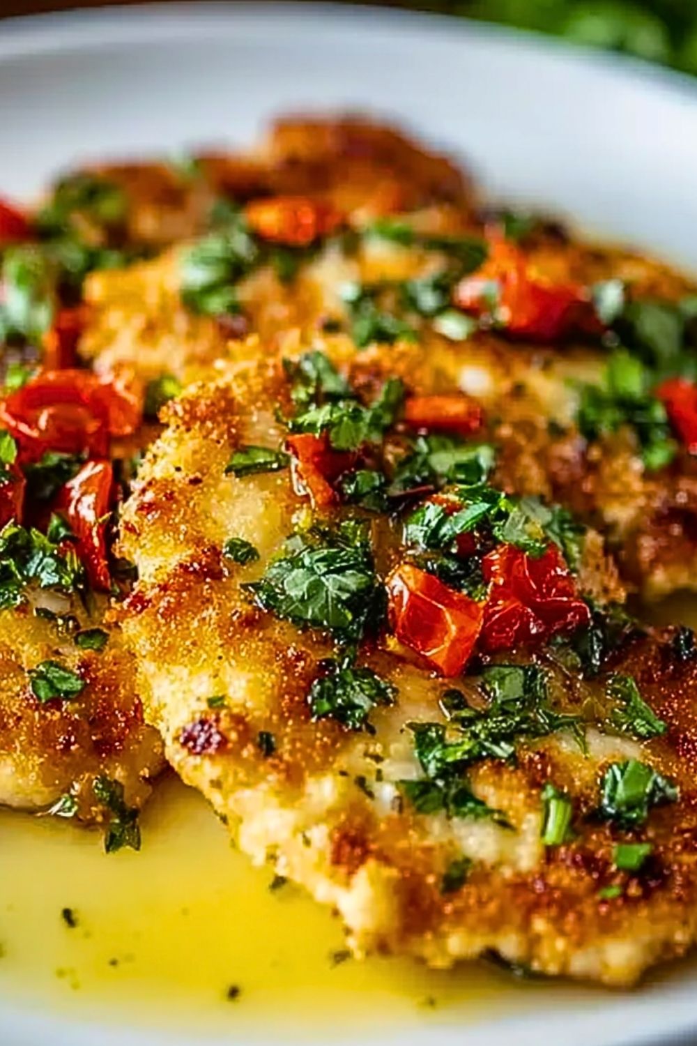 This dish strikes the perfect balance between crispy and tender. The Romano cheese crust forms a savory, slightly nutty coating that locks in the juiciness of the chicken. Every bite delivers a satisfying crunch followed by a burst of citrusy butter sauce.