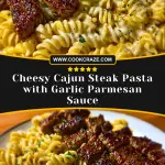 Keywords: cheesy steak pasta, garlic parmesan sauce, easy dinner, comfort food, pasta recipes, cajun recipe