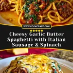Cheesy Garlic Butter Spaghetti with Italian Sausage & Spinach