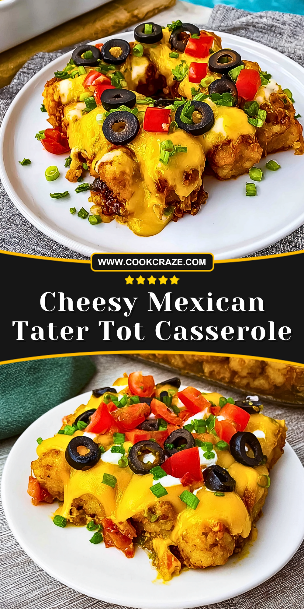Keywords: Cheesy Mexican Tater Tot Casserole, easy dinner, casserole recipe, Mexican casserole, tater tot casserole, dinner ideas, comfort food