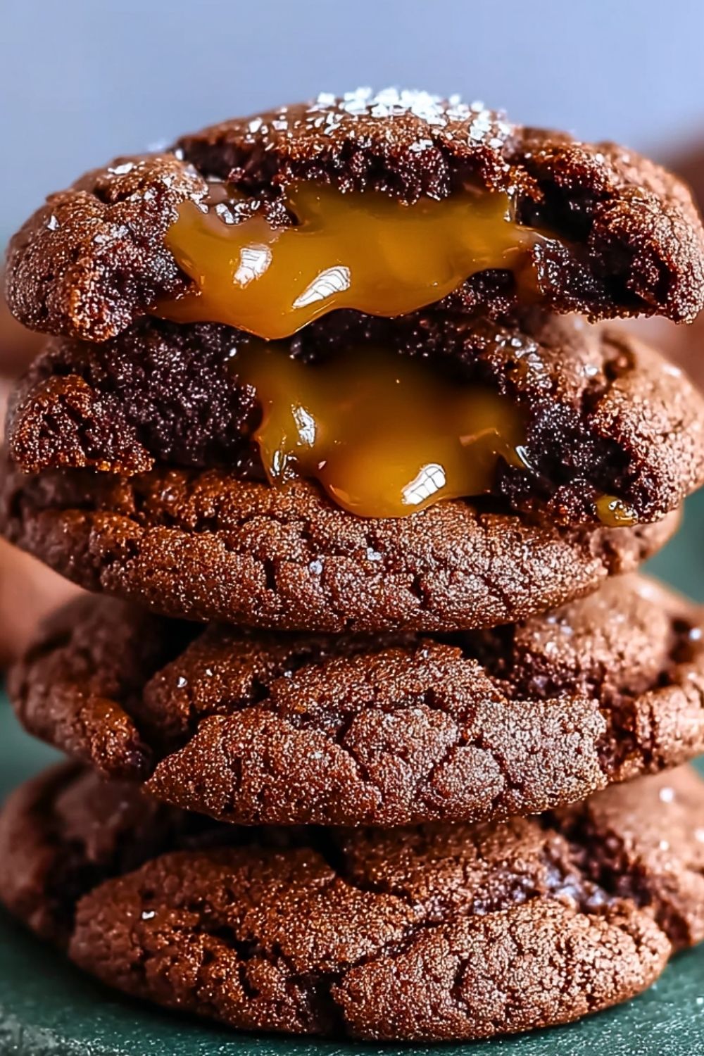 Imagine biting into a rich, fudgy cookie with a perfectly gooey caramel center that oozes out at first break. These Chewy Chocolate-Caramel Cookies are a decadent treat that bring together the deep flavor of cocoa with the buttery sweetness of soft caramel. Each cookie is a little indulgent surprise, combining textures in a way that feels both comforting and luxurious.