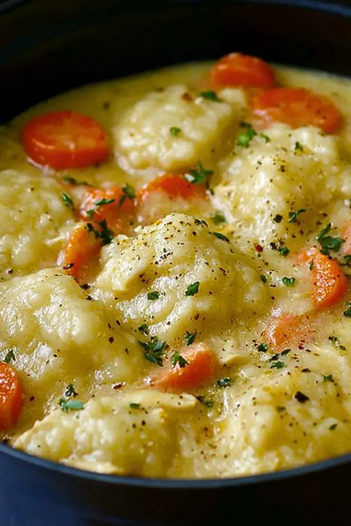 • Unbeatable Comfort: Creamy broth, tender chicken, and soft dumplings create the perfect cozy dish for chilly nights or when you’re under the weather.