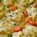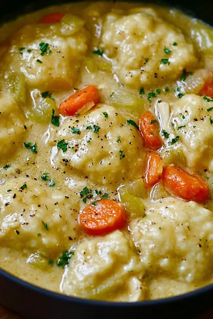 Chicken and Dumpling Soup is the ultimate comfort food — a bowl of rich, creamy broth brimming with tender chunks of chicken, hearty vegetables, and fluffy, cloud-like dumplings that melt in your mouth. This timeless classic brings back memories of cozy kitchens, family dinners, and the unmistakable warmth that comes from a homemade meal crafted with love and care.