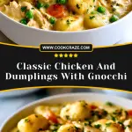Creamy, comforting, and undeniably satisfying — this Classic Chicken and Dumplings with Gnocchi recipe brings a delightful twist to the beloved Southern staple. Instead of traditional flour dumplings, pillowy gnocchi soak up the rich, velvety broth, blending beautifully with shredded chicken, tender carrots, and green peas. Every spoonful is packed with warm, savory flavors and melt-in-your-mouth textures that make this dish an instant favorite for both weeknights and gatherings.