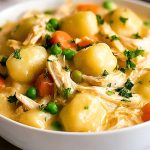 Creamy, hearty, and loaded with comfort — this Classic Chicken and Dumplings with Gnocchi is the ultimate quick dinner solution. With tender shredded chicken, pillowy gnocchi, sweet peas, and carrots in a velvety herb-infused sauce, this dish offers everything you want from cozy food ideas. Perfect for anyone craving an easy dinner, family-friendly meals, or comforting weeknight dinner ideas. Whether you’re looking for a healthy-ish snack, quick meal prep, or easy recipe for leftover chicken, this one-pot wonder delivers in taste and simplicity.
