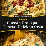Keywords: easy dinner, slow cooker chicken, creamy orzo, crockpot recipe, Tuscan chicken, one-pot meal