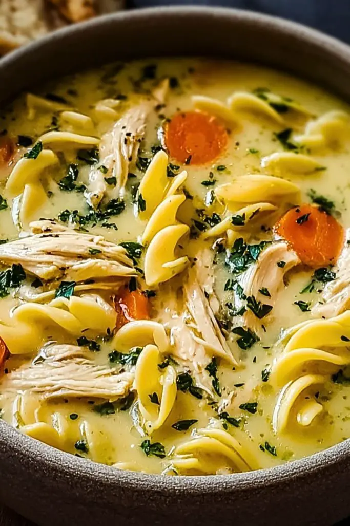 What makes this soup truly special is the perfect balance between comfort and flavor. The gentle creaminess doesn’t overpower; instead, it enhances the natural savory depth of the chicken and herbs. Whether you’re feeling under the weather or simply craving something cozy, this creamy twist on a beloved favorite will always hit the spot.