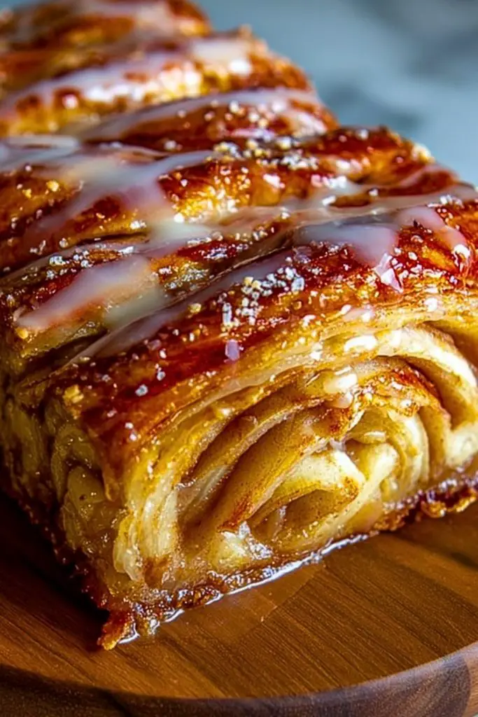 Golden, flaky layers of buttery pastry wrap themselves around soft, cinnamon-spiced apple slices in this Cozy Apple Kringle with Vanilla Glaze. The crispy edges contrast beautifully with the gooey, spiced apple filling, making each bite a warm, fall-inspired indulgence. Topped with a silky vanilla glaze and a touch of coarse sugar for crunch, this bake is not just a dessert—it’s a comforting ritual.