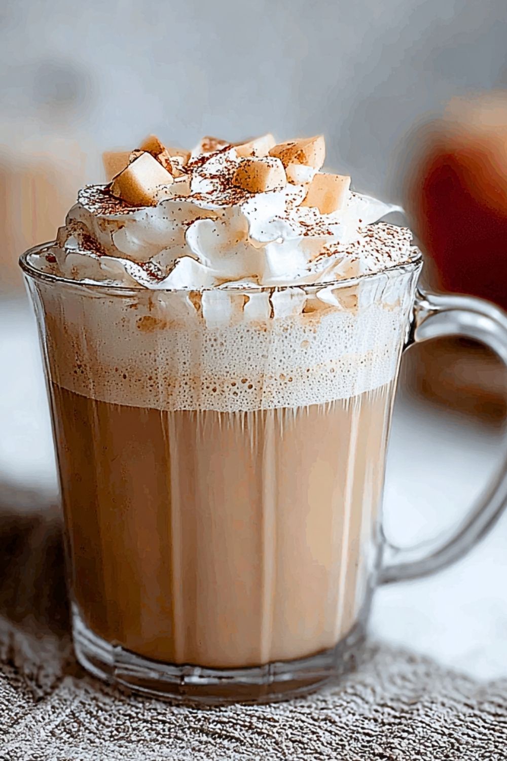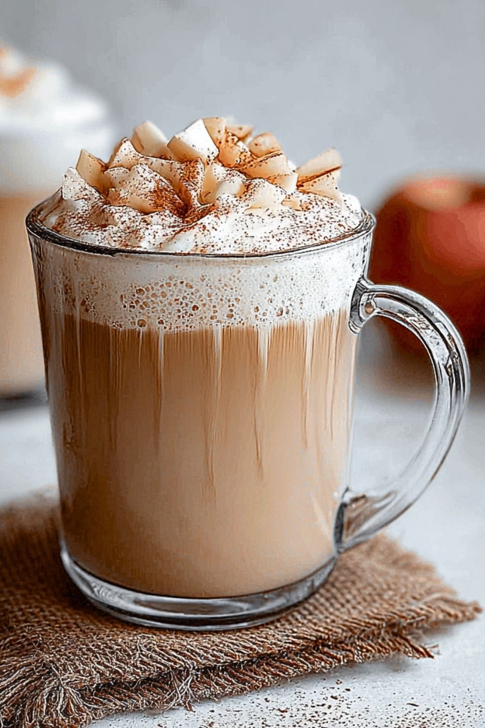 Top your latte with whipped cream if desired. Sprinkle cinnamon, cocoa powder, or nutmeg over the foam. For a more indulgent finish, drizzle caramel sauce or add thin apple slices.