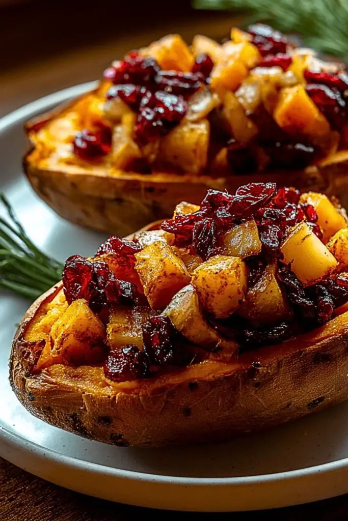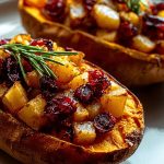 Cranberry Apple Twice-Baked Sweet Potatoes are more than just a side—they’re a celebration of cozy flavors, seasonal ingredients, and comforting textures. Whether you’re cooking for the holidays, a potluck, or just craving something nourishing and beautiful, this dish delivers every time. It’s easy to prepare, flexible to your taste, and naturally gluten-free and vegetarian. Plus, that sweet-tart apple and cranberry filling? Pure autumn magic in every bite.