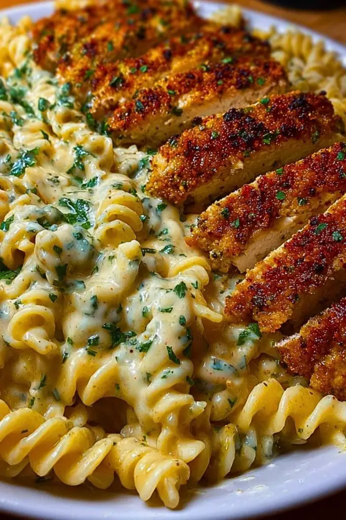 This dish has a little bit of everything — crispy, juicy chicken, creamy cheesy pasta, and a Cajun kick that keeps your taste buds happy. It’s weeknight-friendly but also impressive enough for guests. Plus, the ingredients are mostly pantry staples, making it both easy and affordable. You’re getting a comforting dinner with gourmet flair — no reservations needed.