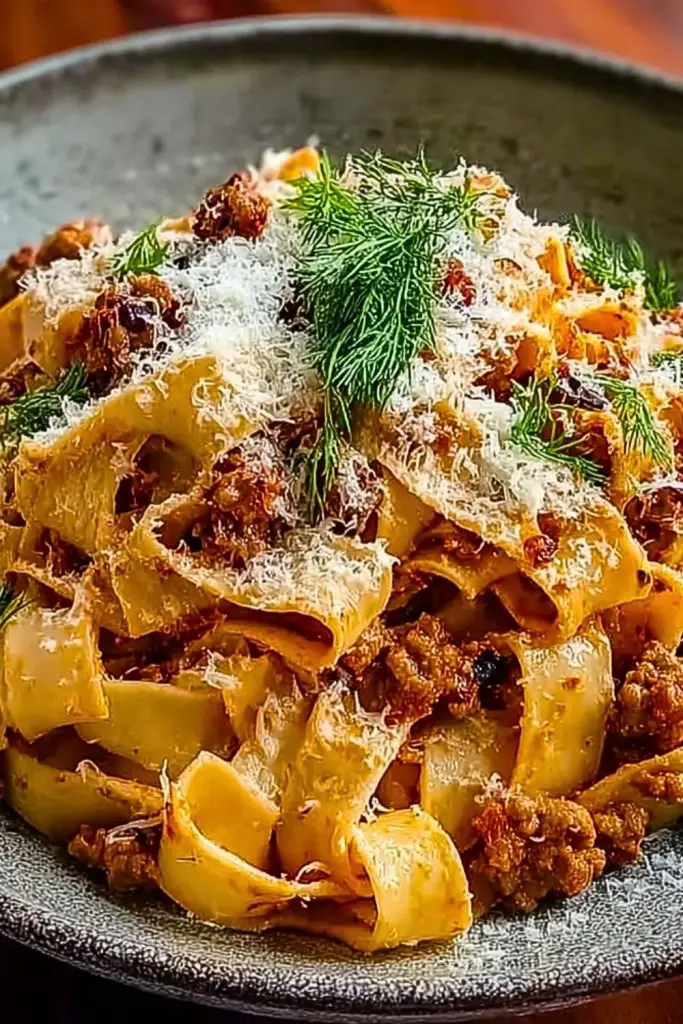 This Creamy Calabrian Chili Pappardelle with Sausage & Fennel is a luxurious pasta dish that brings bold Southern Italian flavors to your table with ease. Thick, silky ribbons of pappardelle are coated in a spicy, creamy Calabrian chili sauce, layered with the richness of Italian sausage and the subtle sweetness of sautéed fennel. Topped with freshly grated Parmigiano-Reggiano and a sprinkle of fresh herbs, it strikes the perfect balance between comfort and sophistication.