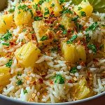 Transport yourself to the tropics with this Creamy Coconut Pineapple Rice—a quick and easy recipe bursting with flavor and texture. Creamy coconut milk, juicy pineapple chunks, and fluffy jasmine rice come together in a delicious balance of sweet and savory. Finished with toasted coconut and fresh herbs, it’s the perfect side dish or light main. Great for quick breakfast, easy dinner, or healthy snack ideas—this is one of those food ideas you’ll make again and again. A must-try for dinner ideas that wow without the work.