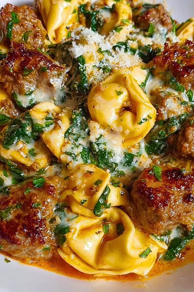 Creamy Garlic Butter Beef Tortellini with Italian Sausage & Spinach brings bold Italian flavors to your dinner table with minimal effort and maximum satisfaction. It’s rich, comforting, and endlessly versatile—perfect for weeknights when you need something hearty, or weekends when you’re craving a little indulgence. Whether you’re serving it with garlic bread and salad or enjoying it all on its own, this dish is bound to become a favorite in your recipe rotation. Simple, satisfying, and full of flavor—just the way pasta night should be.
