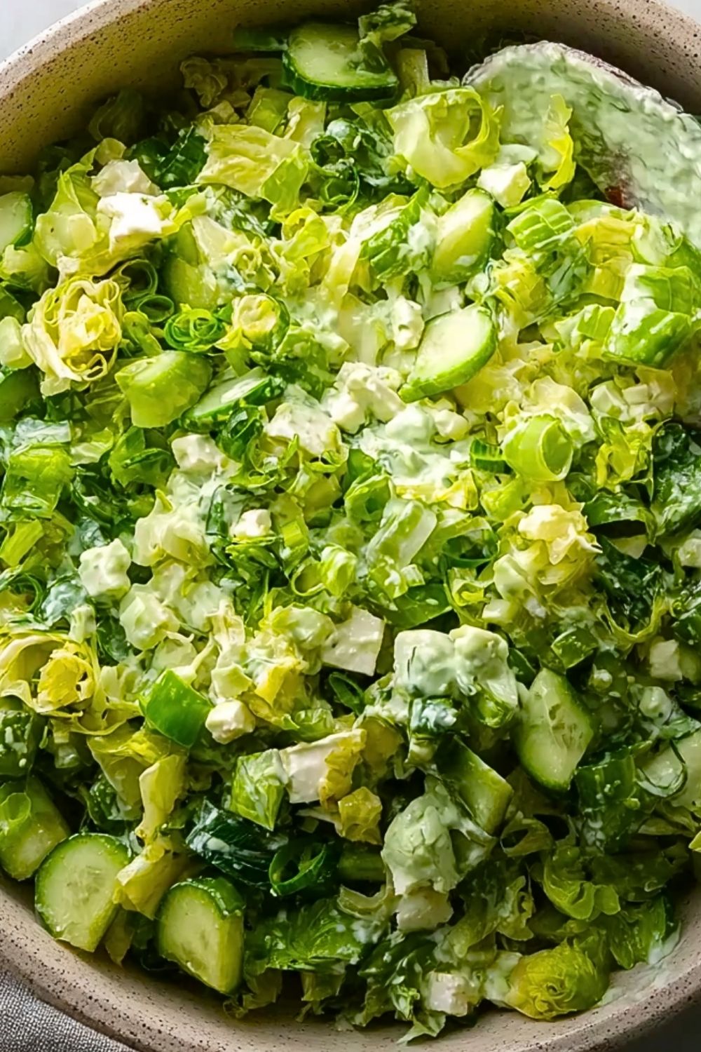 For the vegetables, feel free to swap in what you have. Romaine or iceberg can stand in for softer greens, and zucchini or celery can replace cucumbers for a different crunch. Even adding avocado can bring an extra layer of creaminess that works beautifully with the dressing.