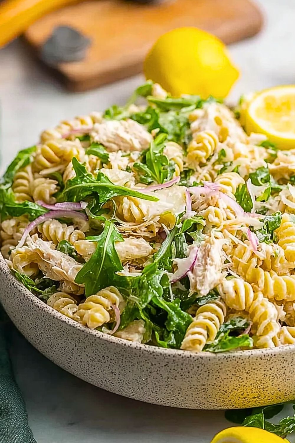 I usually go for rotini or fusilli because their spiral shape holds the creamy lemon dressing beautifully. That said, any short pasta like penne, farfalle, or even orecchiette will work just as well. The key is to choose a shape that catches the sauce in every bite.