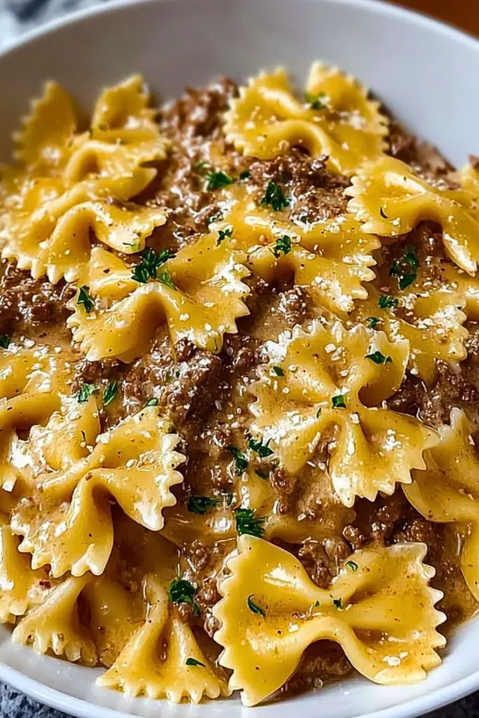 Creamy Parmesan Garlic Beef Bowtie Pasta is the ultimate comfort dish for busy weeknights or indulgent weekend dinners. This easy recipe combines tender bowtie pasta with seasoned ground beef in a rich and velvety Parmesan garlic cream sauce. If you’re searching for quick dinner ideas, hearty pasta recipes, or comforting food ideas that feel like a hug in a bowl, this one is a must-try. Perfect for families, date nights, or weekly meal prep, this creamy beef pasta is one of those easy recipes you’ll make on repeat.