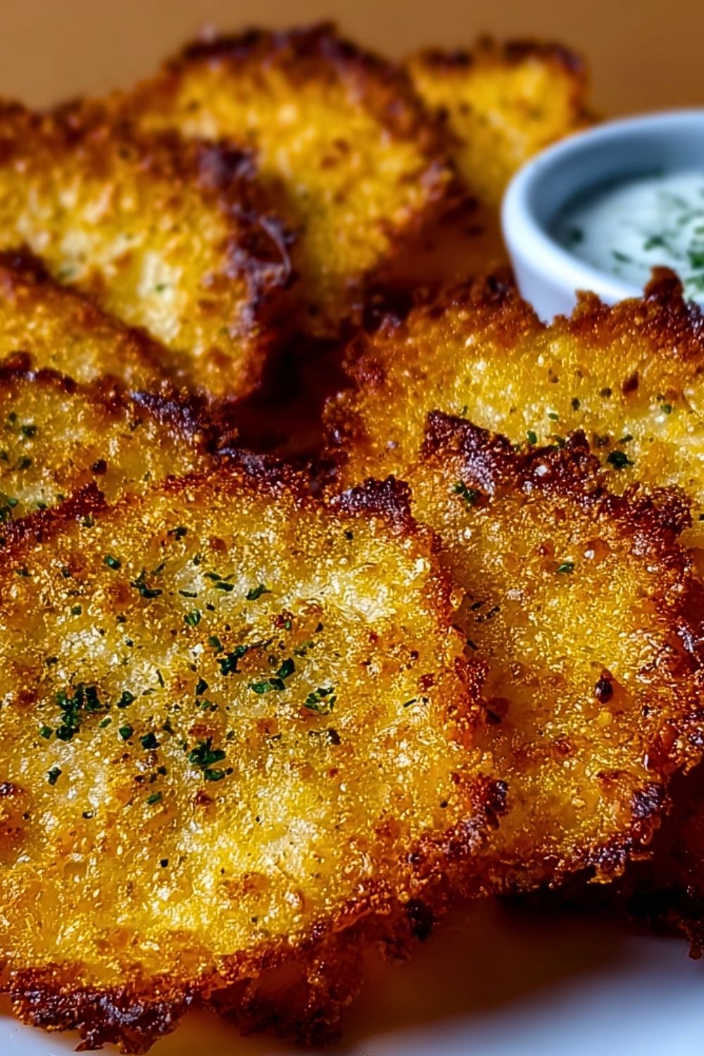 A cool, tangy dip made with yogurt, herbs, and a hint of lemon pairs beautifully with the savory crunch.