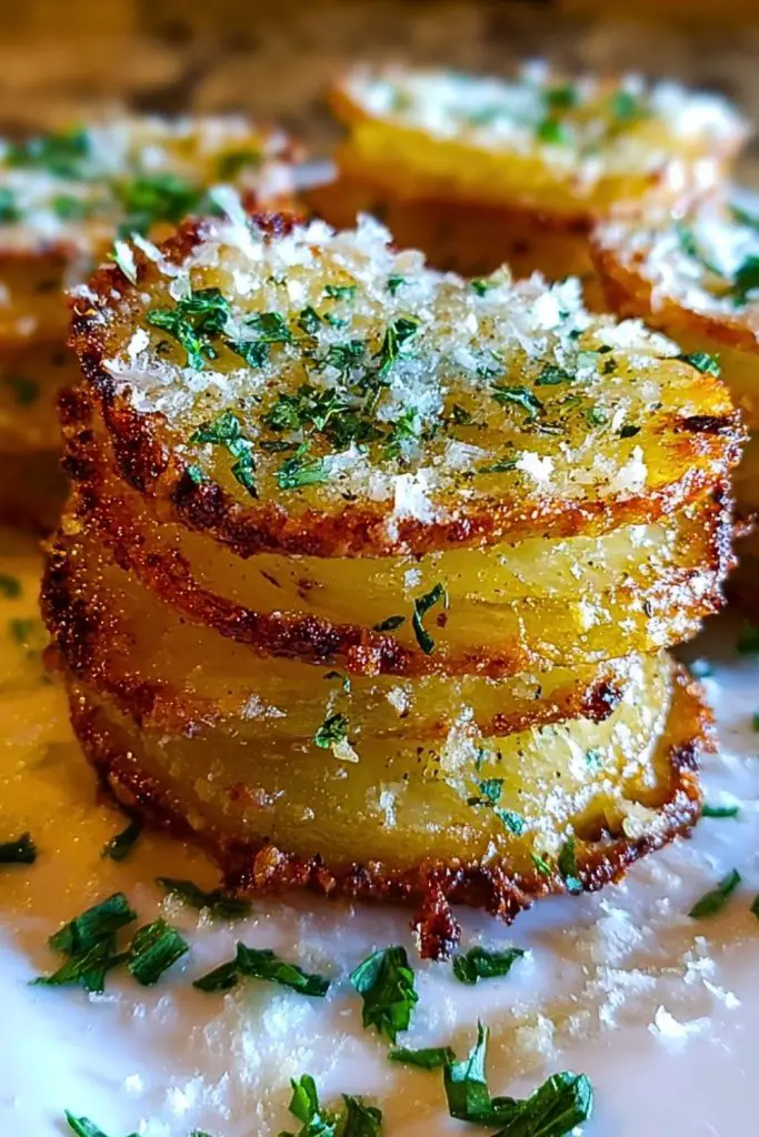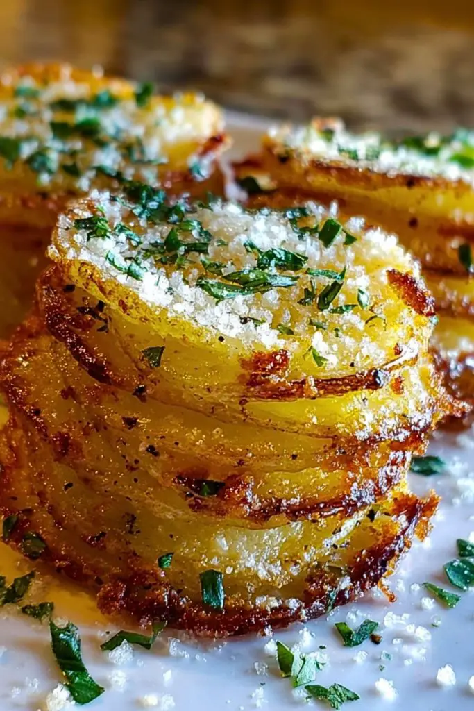 What I love most about this recipe is how it transforms humble ingredients into something elegant and crave-worthy. The thinly sliced potatoes fan out and crisp in the oven, while the Parmesan cheese melts into golden layers of flavor. With a sprinkle of fresh herbs and a touch of garlic, these little stacks become something truly special.