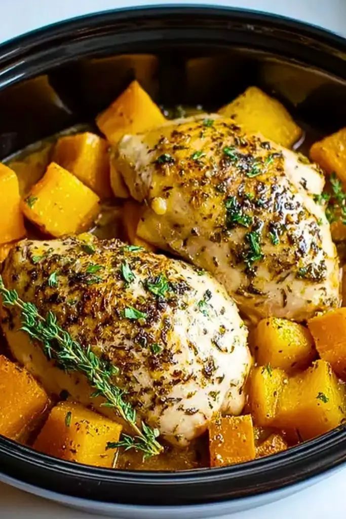 Crockpot Maple Dijon Chicken With Butternut Squash