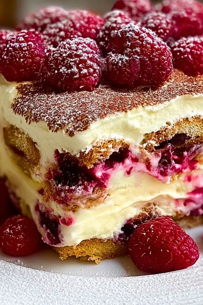 Keywords: Raspberry tiramisu, no-bake dessert, summer tiramisu, fruity tiramisu, easy raspberry dessert