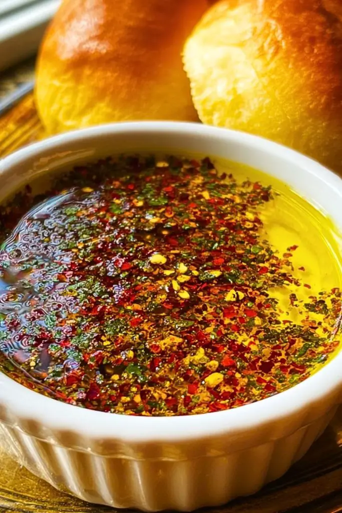 This dipping oil is all about balance and freshness. The quality of your olive oil makes a huge difference—go for cold-pressed, extra virgin if possible. Crushing the dried herbs lightly before mixing helps release their essential oils, intensifying flavor. You can also make the spice blend in larger batches and store it in an airtight container, so you’re just seconds away from a restaurant-style starter anytime.