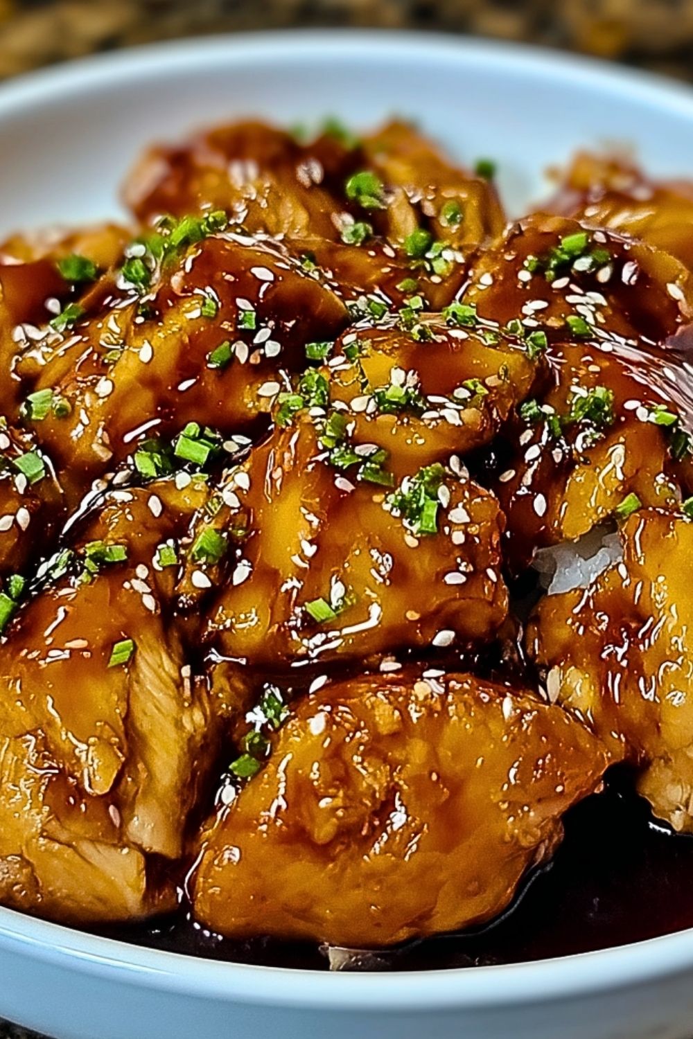 Once done, give everything a gentle stir. Plate the chicken and spoon extra sauce over the top. Garnish with chopped green onions and sesame seeds if using. Serve hot over rice, noodles, or your favorite side.
