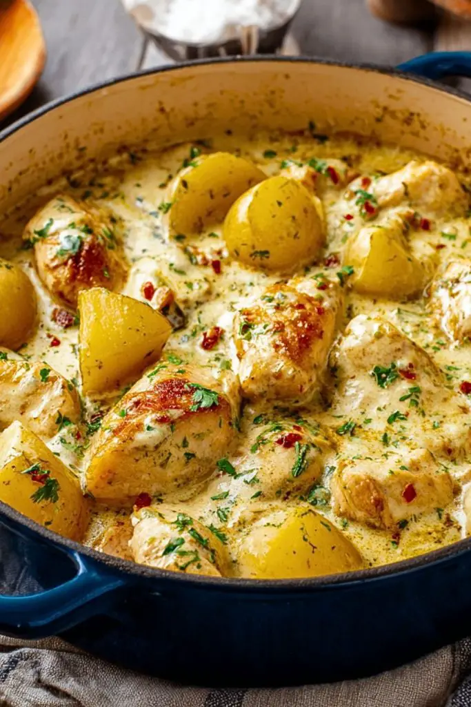 This dish hits the sweet spot between simplicity and flavor. It’s a one-pot meal that gives you juicy, seasoned chicken and creamy potatoes, all cooked in a savory ranch-infused sauce. You don’t need a pile of dishes, fancy ingredients, or hours of prep—just a Dutch oven, a handful of pantry staples, and one hour. Perfect for cozy dinners, meal prep, or feeding a hungry family.