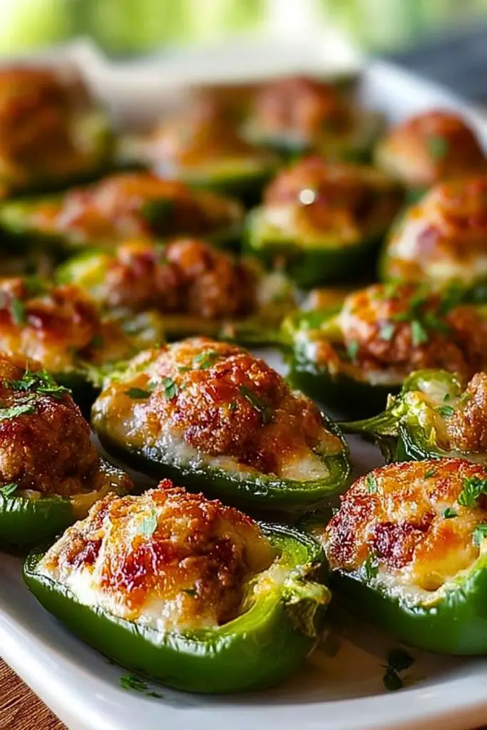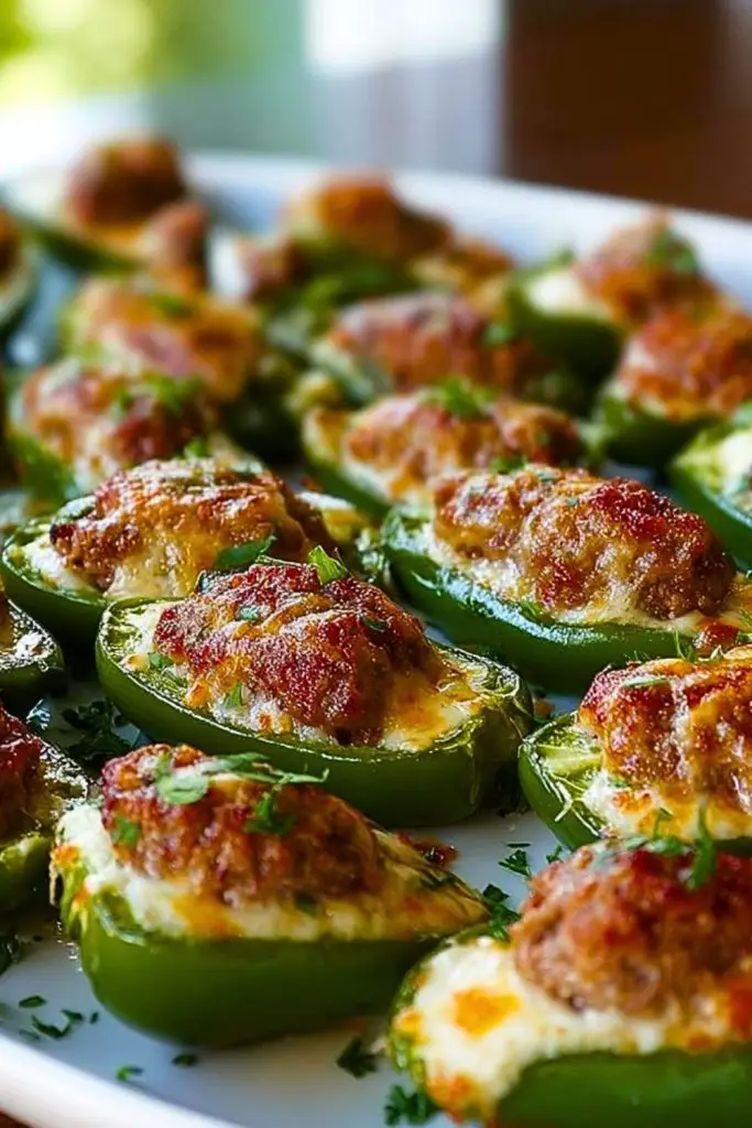 These Easy Baked Jalapeño Poppers are the perfect balance of spicy, savory, and creamy indulgence. Each jalapeño half is filled with a rich, cheesy mixture, topped with seasoned sausage or bacon (your choice!), then baked until golden and bubbly. The result? A finger food that disappears in seconds — crispy on the edges, gooey in the center, with just the right kick of heat. They’re a standout at game day spreads, casual parties, or even as a fun appetizer before a family dinner.