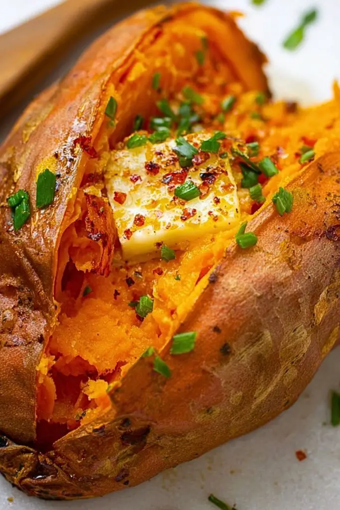 Baked sweet potatoes are incredibly versatile and forgiving. You can bake several at once and use them in various ways throughout the week—from a savory dinner side to a sweet breakfast option. If you’re watching calories or fats, you can skip the butter and use flavorful toppings like salsa or plain Greek yogurt. For the crispiest skin, don’t wrap the potatoes in foil—just bake them directly on a baking sheet.