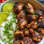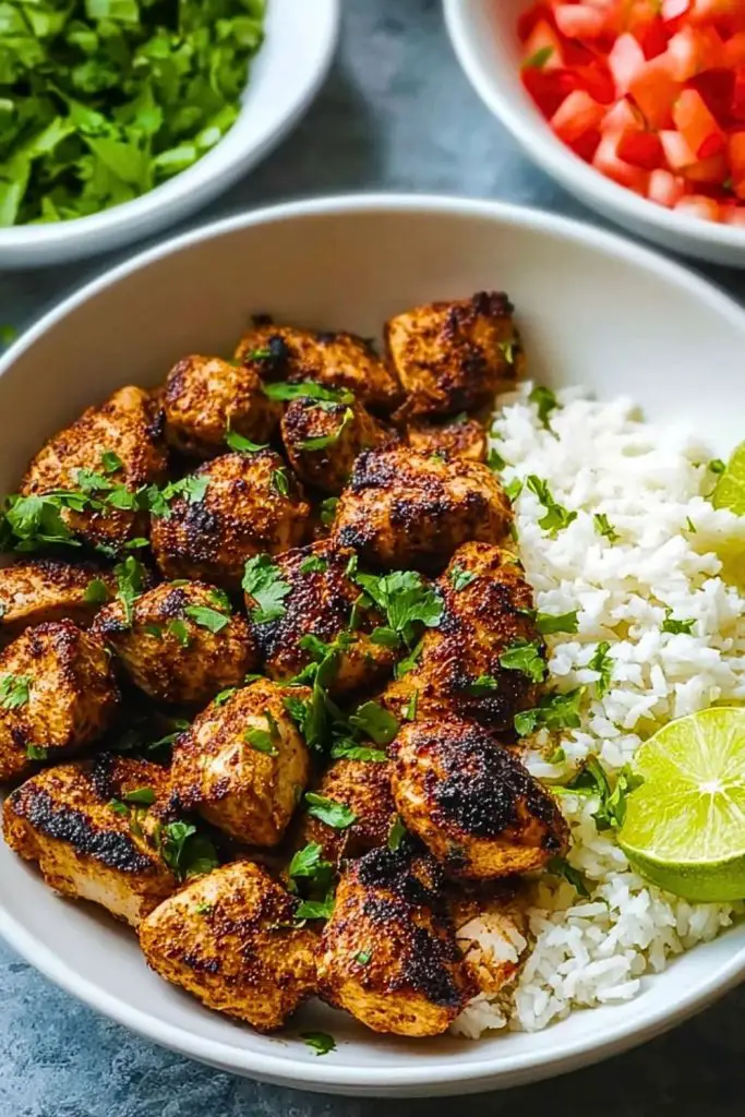 Fluffy rice with zesty lime and fresh cilantro perfectly complements the smoky spice of the chicken.