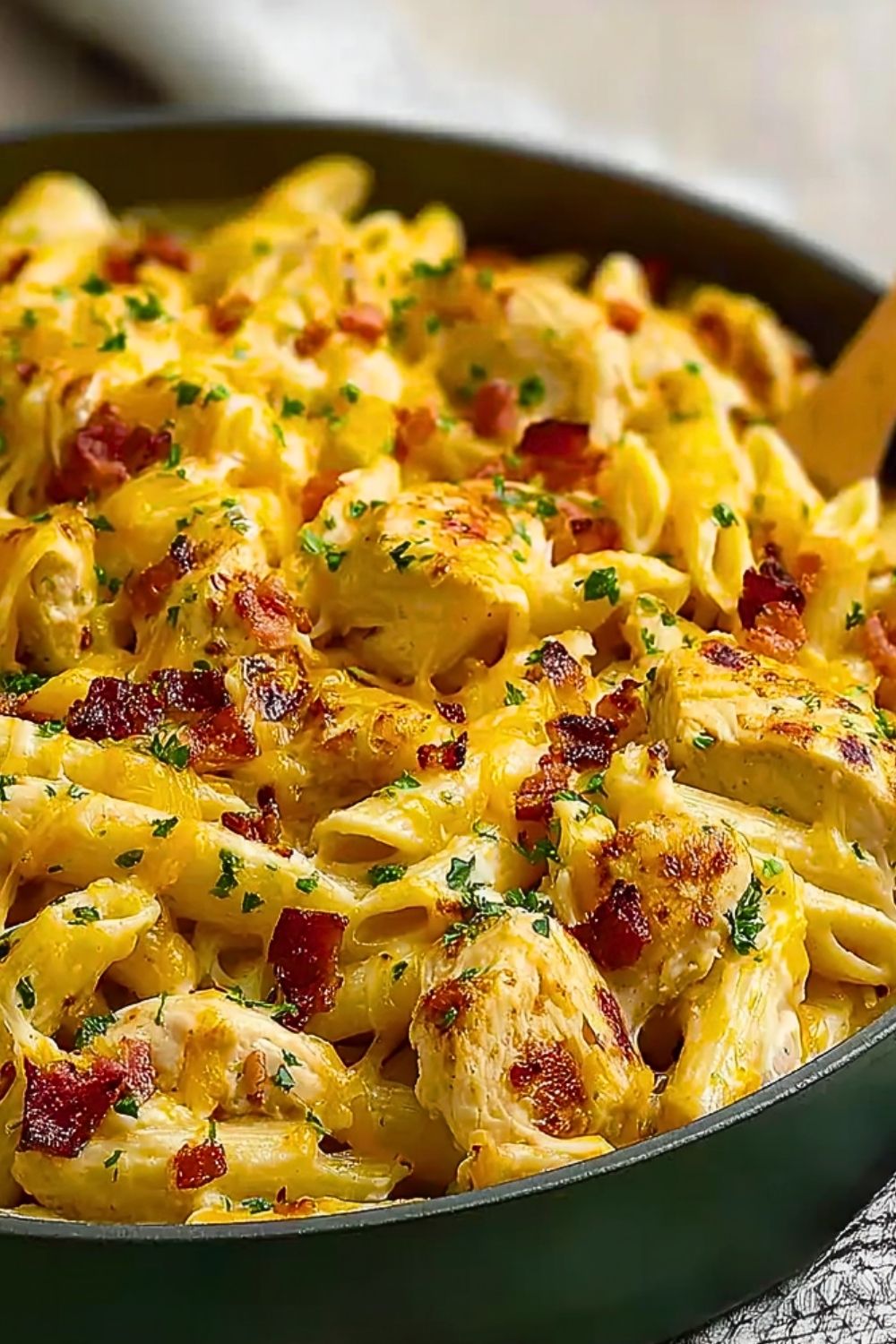 This dish has everything: juicy, seasoned chicken, crispy bacon, gooey cheese, and tender pasta all coated in a creamy sauce with just the right hint of ranch flavor. It’s the kind of recipe that makes people ask for seconds (and thirds). Plus, it comes together in under 30 minutes with minimal prep, making it ideal for busy nights.