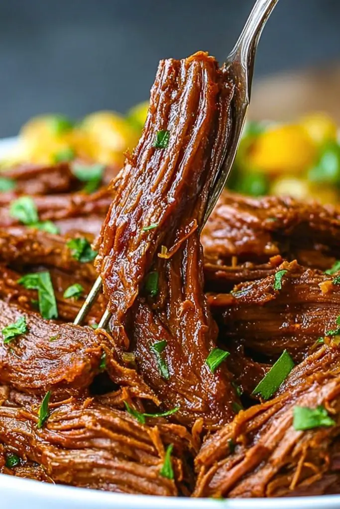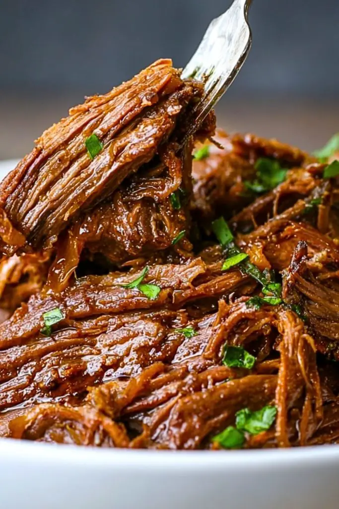 This dish is the ultimate comfort food — tender, slow-cooked beef that’s infused with deep, savory flavor and practically melts in your mouth. With minimal prep and a long, low cook time, the meat becomes perfectly shreddable and juicy, soaking up every drop of its rich, aromatic sauce. It’s the kind of meal that makes your kitchen smell like a cozy Sunday afternoon.