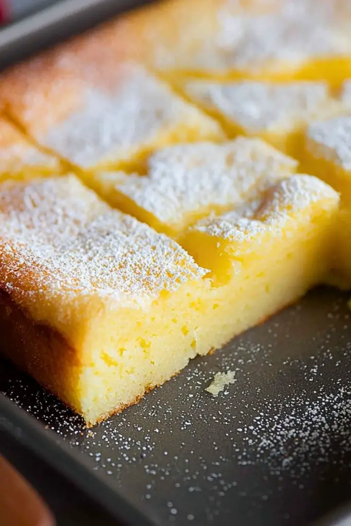 Use high-quality, room-temperature butter for a truly rich flavor and smooth mixing process. Don’t rush the creaming step — beating the butter and sugar until fluffy is what gives this cake its airy texture. Always crack eggs into a separate bowl to avoid shells and ensure consistency. If using unsalted butter, consider adding a pinch of salt to the batter. Let the cake cool completely in the pan to allow the custardy center to set fully before slicing. Dust with powdered sugar just before serving for the freshest look.